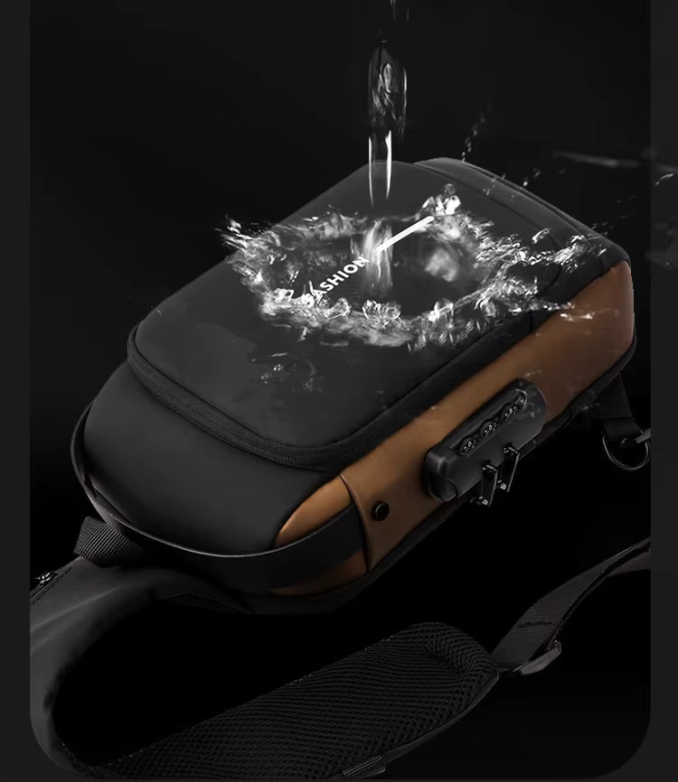 Men’s Trending Waterproof Anti-Theft Shoulder Bag – Motorcycle Chest Sling Bag with Lock, USB Charging Port, Crossbody Design